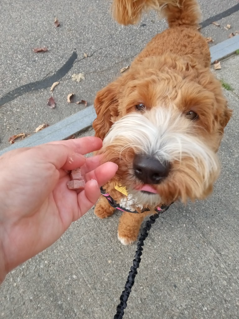 As a new trainer, we only take on easy cases. We do not take on dogs with aggression, reactivity, resource guarding, or real separation anxiety. If your needs are greater, or more complicated, please seek the help of a more experienced trainer, listed at Recommended R+ dog trainers